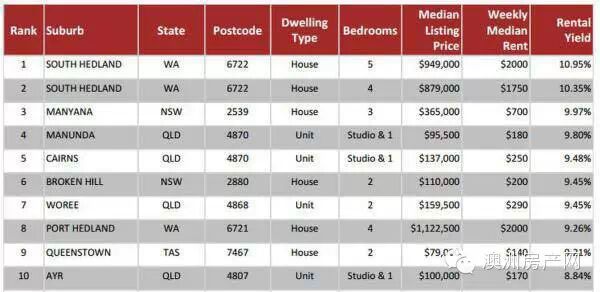 澳大利亚各地区投资回报率排名