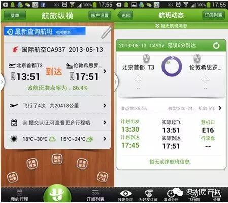 外出旅行一定要关注航班动态,从而也能合理安排时间。目前国内做的比较好的航班软件有航旅纵横、飞常准、航班管家等等,其中航旅纵横是中国民航推出的一款应用,在航班动态上的预报也更为准确。如果想节省时间不通过柜台值机,那么下载你所购买的航空公司的APP通过手机值机是个不错的选择。