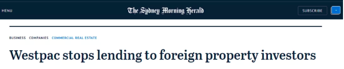 澳洲银行巨头之一的Westpac西太银行首先宣布:停止发放贷款给所有外国购房者,包括持有澳洲临时签证的海外人士。