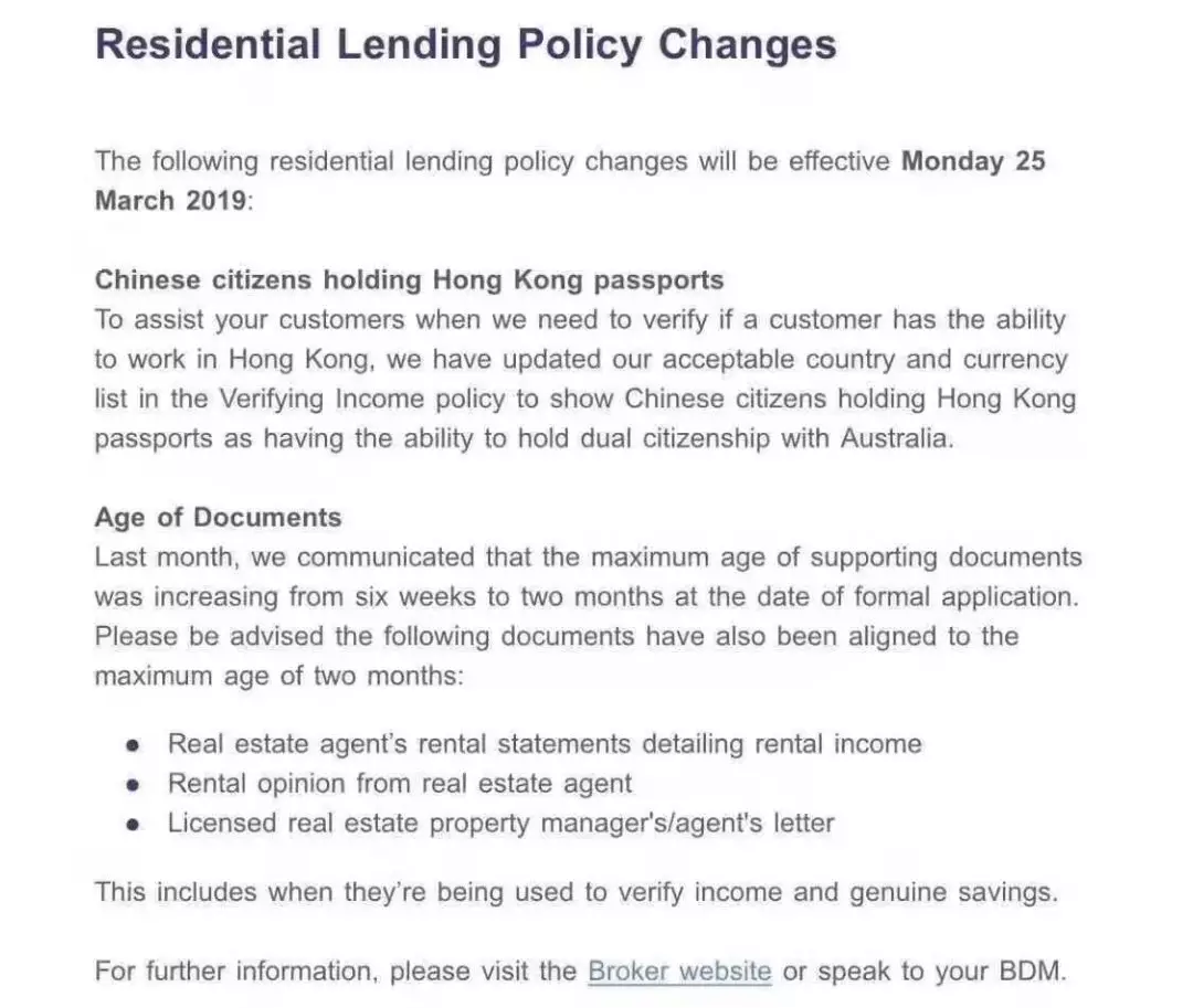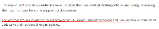 据悉,Westpac集团的子公司,包括Westpac、St. George, Bank of Melbourne 和 BankSA在内的四家银行,都更新了它们的住宅贷款政策。