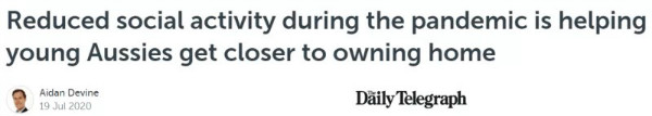 疫情期间社交活动减少,但是澳洲年轻人却从中受益,他们可以攒钱更快的拥有自己房子。