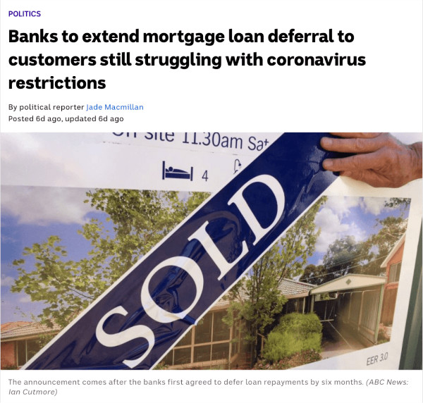 在澳洲新财年的第一个星期,澳洲各大银行紧锣密鼓的出台新一轮延期还款的各项政策,使第一期6个月的延期还款结束后,可以通过申请再次延期4个月。