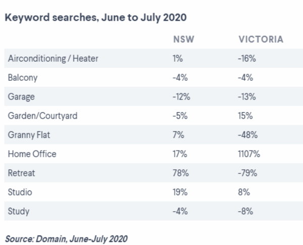 关键字搜索数据显示购房者们的一些新增需求,例如家庭工作室,花园或庭院以增加空间。