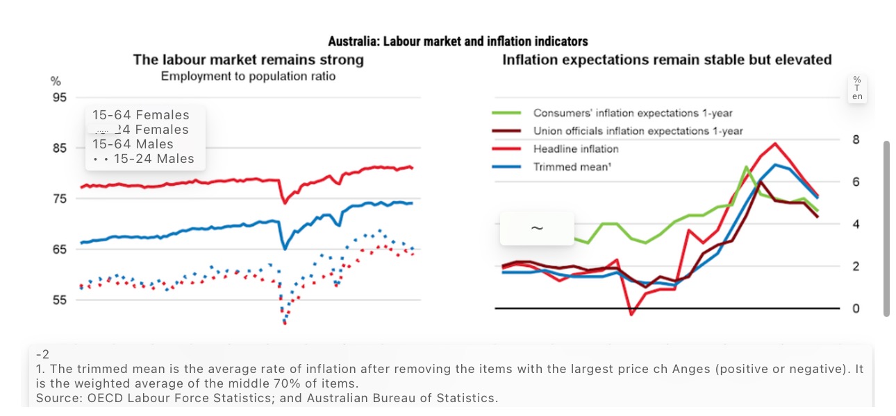最新的经合组织经济展望在通货膨胀方面也有好消息,由于全球压力的缓解,预计通货膨胀将放缓