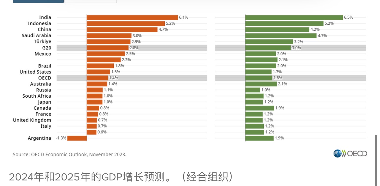2024年的数字正是经合组织的平均水平,因为英国和欧洲主要经济体的增长疲软拖累了印度、印度尼西亚和中国的亚洲强国。