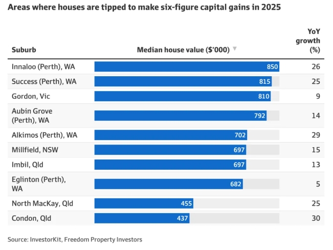 Paliwal认为,西澳的Aubin Grove、Success、Innaloo、Atwell、Beeliar、Lockridge和Beechboro是房价上涨动力较大的城区,此外还有昆士兰州中部的North Mackay、Condon和Gulliver。