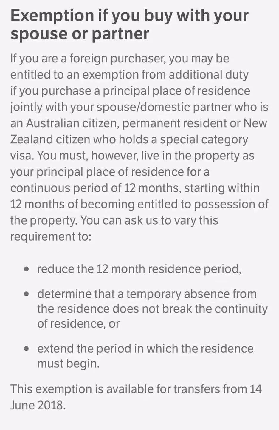 1)如果你和你的配偶,其中任何一方有澳洲或新西兰永久居留权PR,或是澳新公民,那么7%海外人士投资附加税全部豁免;