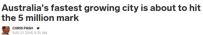 是的,越来越多的人选择了墨尔本。而今天,也就是2018年8月27日,墨尔本作为全澳发展最快的城市,人口达到了500万的里程碑。也是澳洲第二个人口超过500万的大城市。