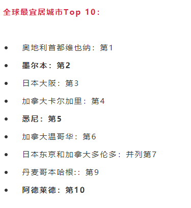 墨尔本也依然是全球最宜居城市,哪怕不是第一,也稳居第二!