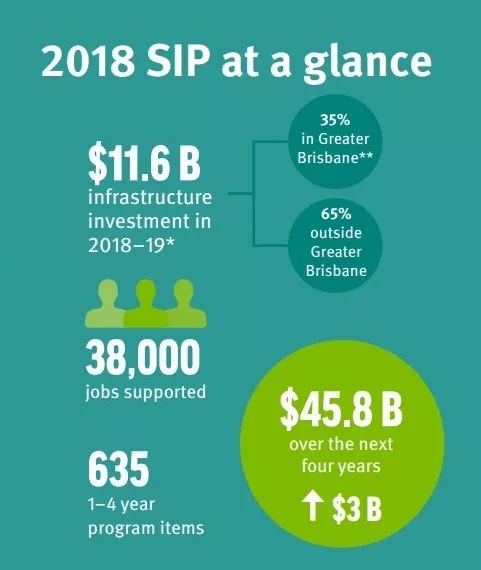 这份报告被称为昆士兰基础设施计划(State Infrastructure Plan),在第二部分明确指出将在2018-2019年实施的项目总预算为116亿澳币,届时创造约38000个就业机会。