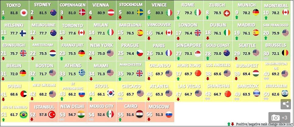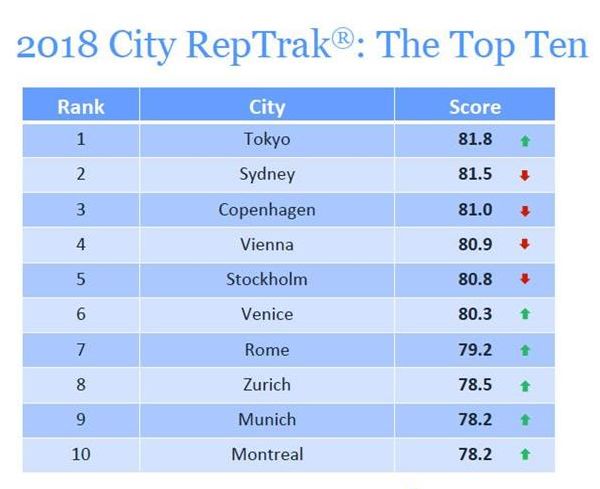 声誉研究所 (Reputation Institute) 是一家专门从事声誉调查的咨询和顾问公司。该公司的年度全球声誉最佳城市报告,以安全性、城市美丽度和领导能力为标准,调查分析了全球56个城市的表现。
