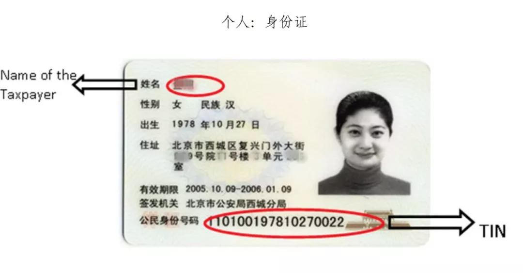 中国个人纳税识别号为个人有效身份证号码(18位数字或者17位数字+X)。如下图所示。