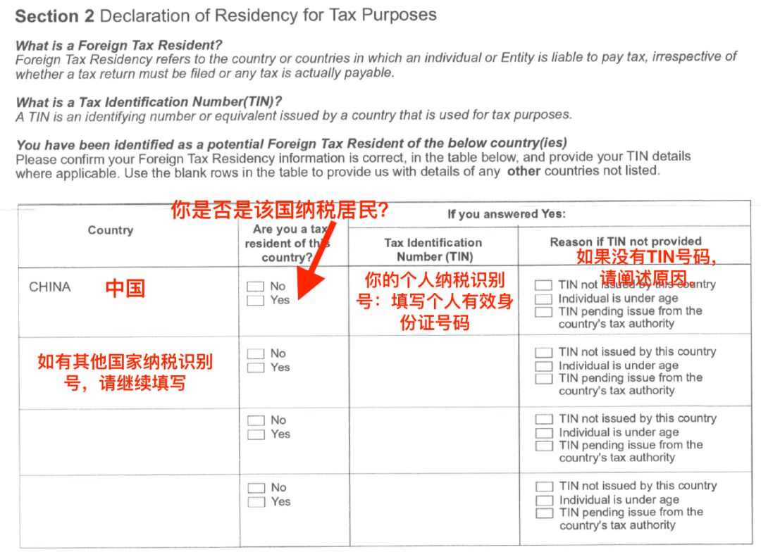 第二部分:居民税收信息:填写个人TIN相关信息。