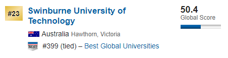 斯威本(Swinburne)理工大学,澳洲第23名,全球第399名。