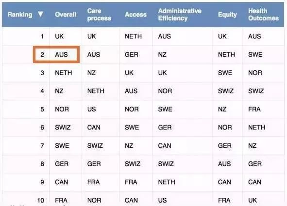 根据联邦基金(Commonwealth Fund)的调查报告,澳大利亚的公私混合(mixed public-private)医保系统,在全球11个主要发达国家中排名第2名。