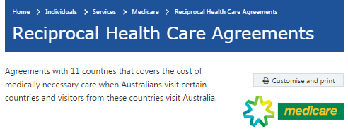 澳洲政府与比利时、芬兰、意大利、马耳他、荷兰、新西兰、挪威、爱尔兰、斯洛文尼亚、瑞典和英国(排名不分先后)签订了医疗互惠协议,这意味着取得澳洲身份的人不但可以在本国享受基本的免费医疗福利,到上述国家旅游或居住时也可以免费享受当地的基本医疗待遇。