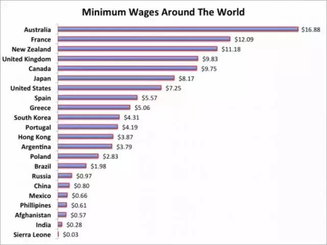 根据ConvergEx集团发布最新报告显示,以绝对值来看,澳洲时薪达到16.88美元,高于美国的7.25美元,领先世界主要国家,高居榜首。你的工资时薪是多少?
