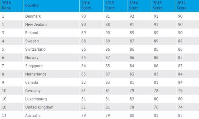 透明国际的《2016年清廉指数》(Corruption Perception Index)显示,澳洲今年是全球第13个最为清廉的国家。