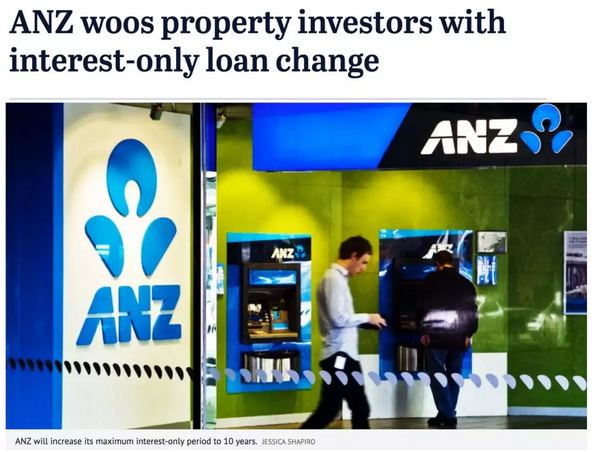 “澳洲四大之一的ANZ银行宣布,修改贷款政策。只还息不还本的贷款额度提高到最高90%!买家最少只需10%作为首付,就可申请只还利息贷款(之前为至少20%);只还利息贷款期限延长一倍至10年。”