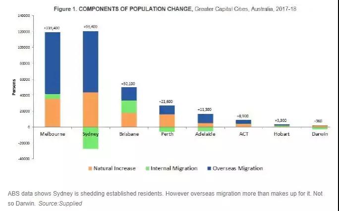 澳大利亚统计局公布最新人口数据显示,墨尔本人口增长量居全澳第一,而达尔文成为唯一一个出现人口数量下滑的首府城市。