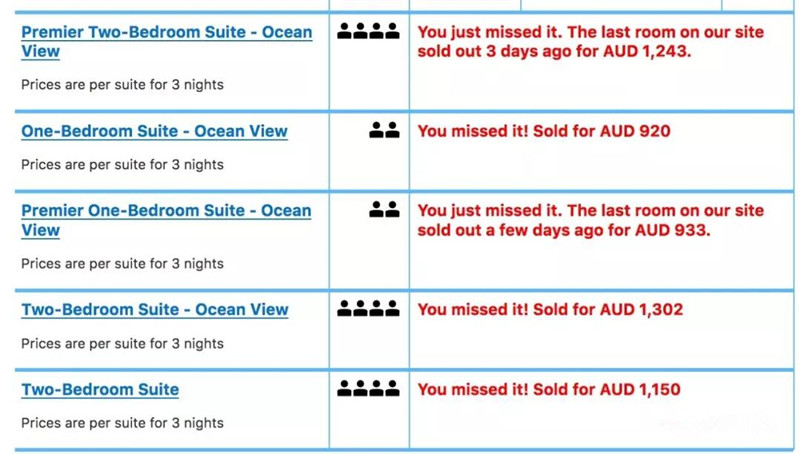 ▲ 小编随机在酒店预定网站缤网Booking.com上搜索了布罗德海滩AVANI酒店在本周末(4/19-21)期间的预定情况发现,两房公寓一房难求;