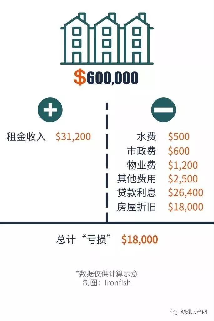 但去年,小王买了一套60万的投资房,租金收入$600/周,这时候,这笔投资生意带来的效益如下图所示: