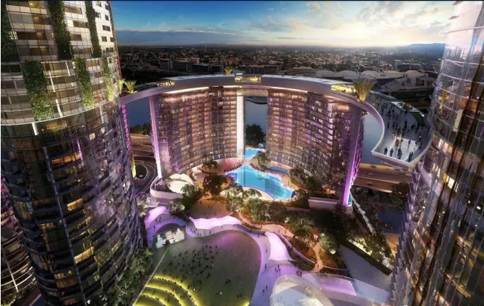 ▲ 布里斯班皇后码头大型赌场度假村设计图,目前正在施工中;