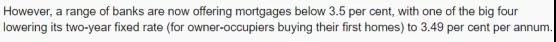 此外,多家银行也选择提供低于3.5%的抵押贷款利率,甚至四大银行的其中之一已经将其两年固定利率降低到3.49%。