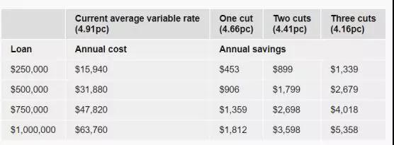 对于拥有100万澳元贷款的人来说,本次降息可能会带来每年将近2000澳元节省。