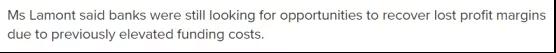 Lamont表示,银行仍在寻找机会,以弥补此前因融资成本上升而产生的利润缺口。