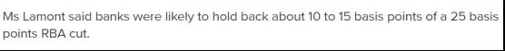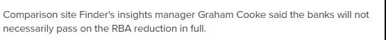 Finder insight网站的经理Graham Cooke也表示,银行可能不会转嫁全部降息力度。