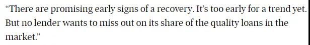 “复苏的早期迹象很明显。现在就形成一种趋势还为时过早。但没有哪家银行愿意错过其在市场上优质贷款的份额。”