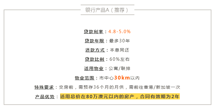 推荐几款贷款产品。并且针对我们澳洲房产网的客户现还有特别优惠:根据提供的收入情况而定,免除600-1000澳币!