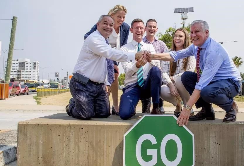 澳洲副总理Michael McCormick,黄金海岸市长Tom Tate,联邦交通运输部部长Mark Bailey等领导人昨日在黄金海岸为此庆祝资金僵局的终结。