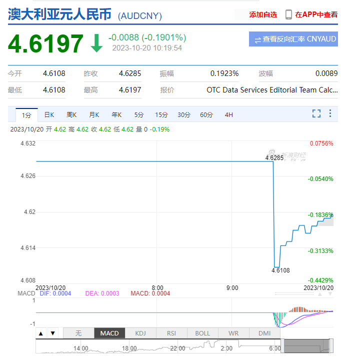 今天汇率开盘也是直接下跌,昨天最后收盘价格是1:4.628,但是开盘直接跌倒了1:4.61,虽然后续有一点点上涨的趋势,但并不算明显。