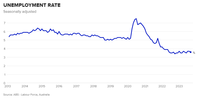 澳洲统计局ABS公布的孞数据,今年9月份,澳洲失业率再次下跌,从原本的3.7%下跌到了3.6%,下跌1%。