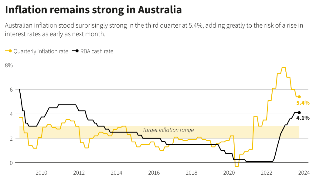自 2022 年 5 月央行开始将利率从大流行病低点 0.1% 上调后,现金利率自 6 月以来一直维持在 4.1%。