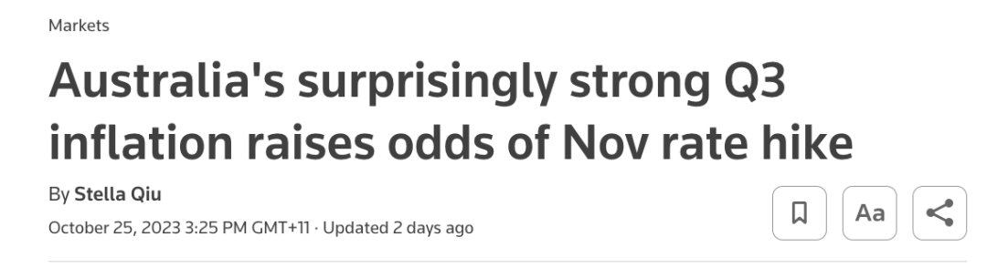 在成本压力下,澳大利亚第三季度通胀出人意料地强劲,这令政策制定者头疼不已,这大大增加了最早下个月加息的风险。