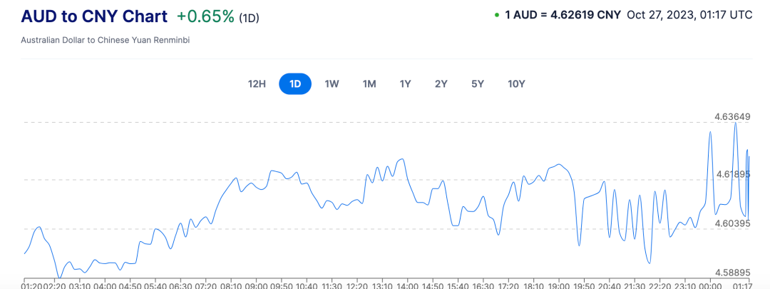 昨天澳币汇率也有所下跌,不过今天已经回升到了4.62.
