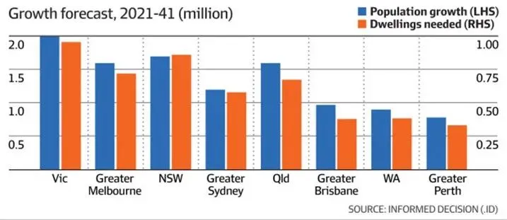 PEXA旗下Informed Decisions的分析显示,在未来20年,全国人口预计将达到740万,这将推动全国四个人口最多的州的住房需求飙升。
