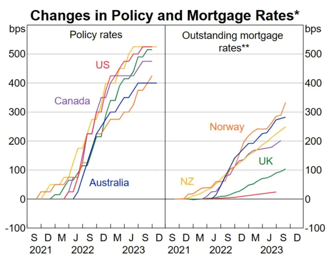 “承受能力紧张正在抑制房价增长的速度。生活成本压力、较高的贷款成本和较高的可偿还性缓冲(自 2021 年底以来比贷款发放率高出 3 个百分点)限制了借贷能力,并使一些人难以获得住房贷款,因为房价几乎已完全恢复”。