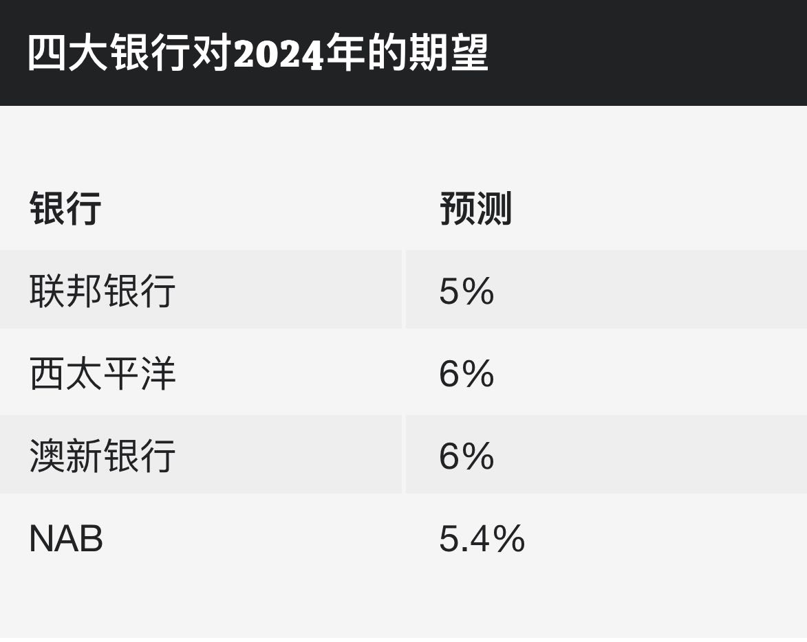 四大银行的数据研究人员和经济学家对2024年房地产价格走势提出了预测;所有这些都无视一系列负面因素,持续增长。