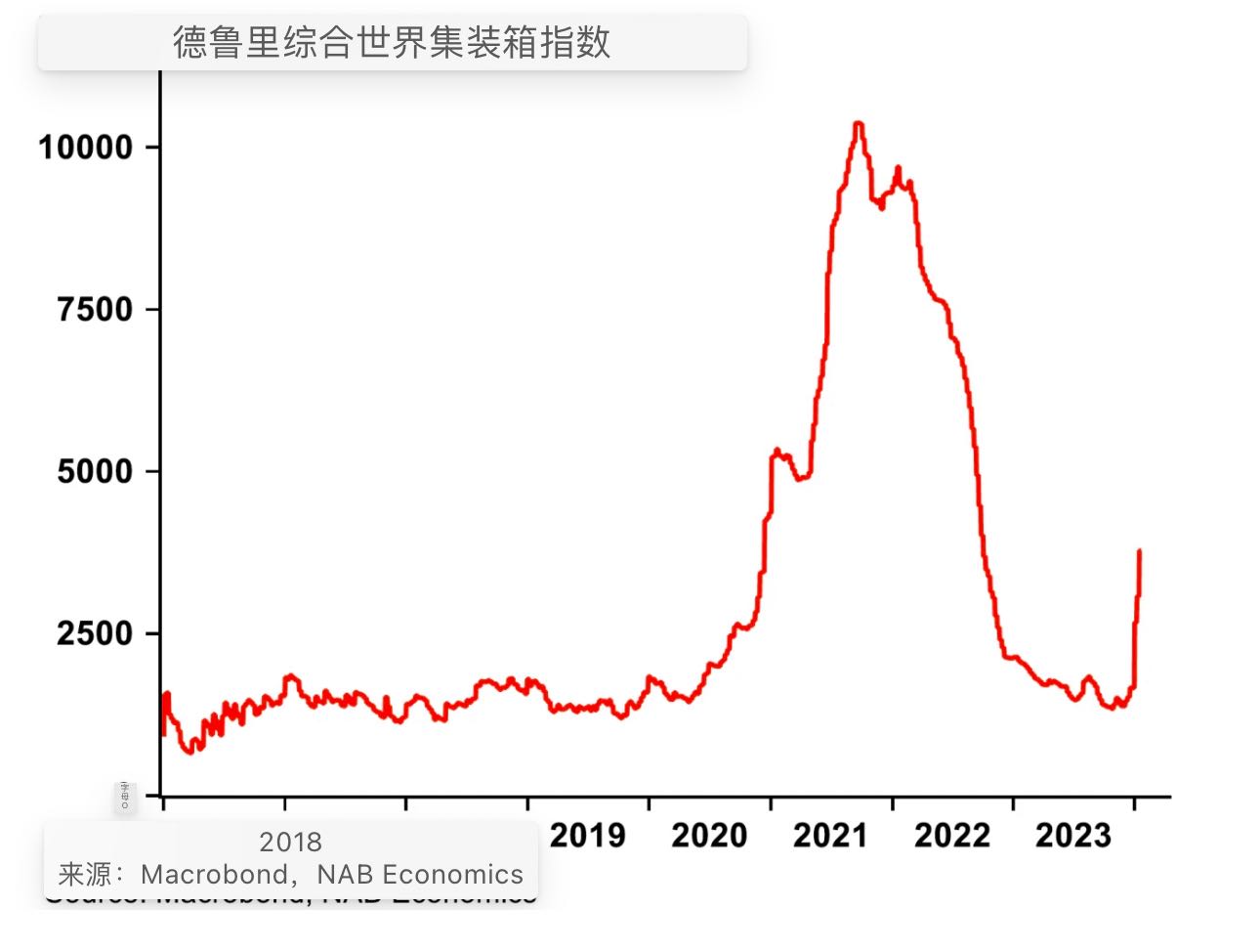 “最近对通过红海和苏伊士运河的航运的中断导致运费飙升,如果持续下去,将加剧全球通胀,并已造成一些工厂中断。”