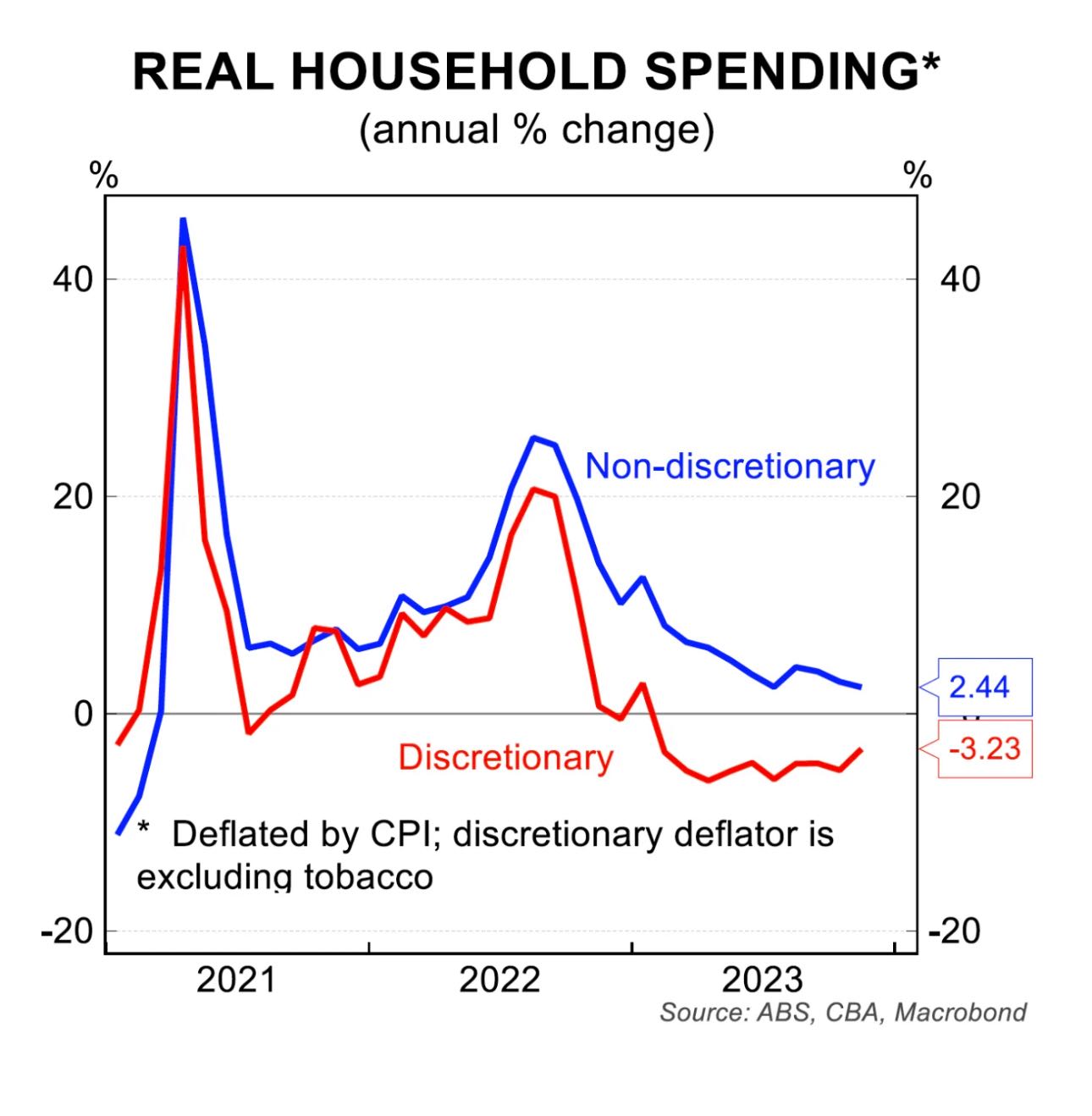 澳大利亚CBA经济主管Gareth Aird表示,RBA迄今为止的13次加息已成功下调了可自由支配商品的通货膨胀率。