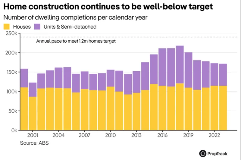 目前的建筑率和建筑审批数据表明,澳大利亚将远远低于国家内阁设定的 120 万套住房的目标。