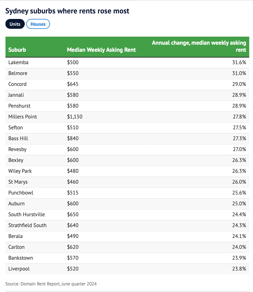 Lakemba的情况尤其引人注目,截至6月,该地区的公寓租金上涨了31.6%,达到每周500澳元。