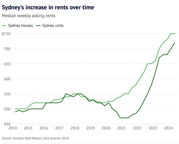 根据Domain的数据,悉尼公寓的典型租金在第二季度上涨了2.9%,相当于每周20澳元,达到每周720澳元。与此同时,悉尼典型公寓的要价租金仍保持在创纪录的750澳元。