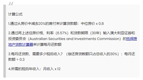 例如,我们是这样计算偿还阿德莱德一套中间房价的贷款,贷款者需要多少税后收入的: