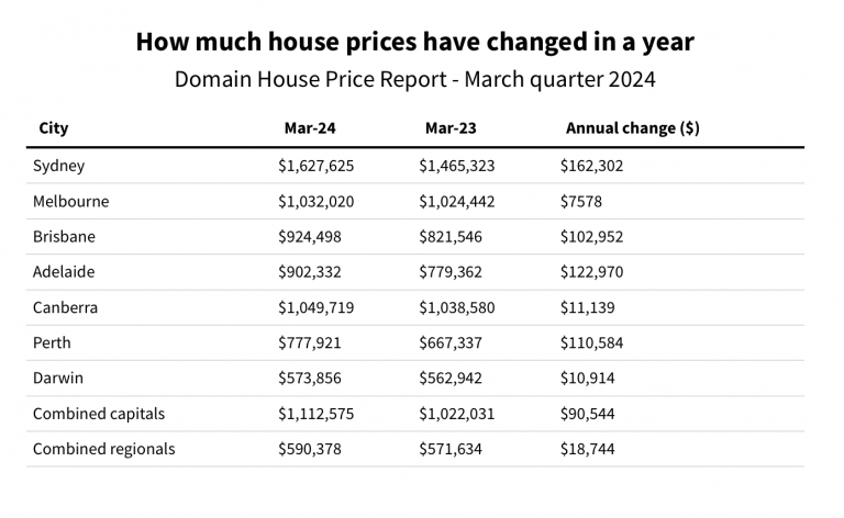 悉尼的独立屋中价达到了创纪录的162,7625万澳元。墨尔本的独立屋中价为1,032,020澳元两者相差595,605澳元。