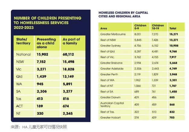 澳大利亚无家可归者组织发布的一份令人震惊的报告显示,在同一时间段内,共有 18,828 名有家人或照顾者的维多利亚州儿童寻求无家可归的帮助——这一数字是其他州或地区中最高的。